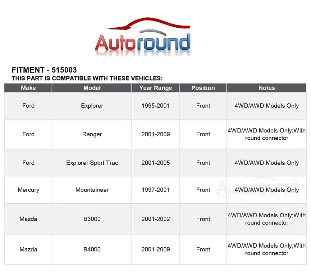 Cubo de Rueda Delantera y Ensamble de Cojinete – 515003 Especificaciones