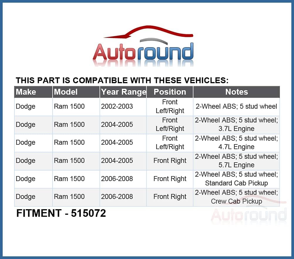 Compatible con Dodge Ram 1500 2003 (ABS de 2 ruedas y rueda de 5 pernos)