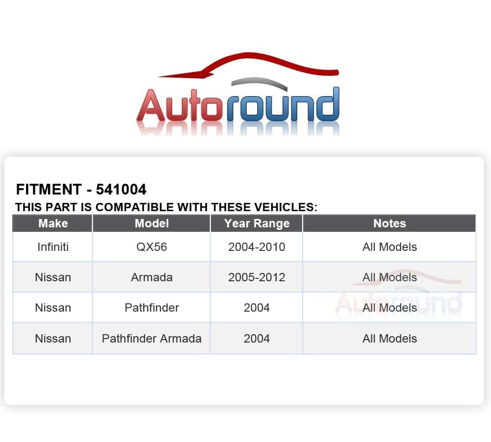 Autoround 541004 Conjunto de Cubo de Rueda Trasero y Cojinete es compatible con Nissan Pathfinder 2004/ Armada 2005-2012, Infiniti QX56 2004-2010. Con 6 Birlos y Sistema ABS, este conjunto de cubo de rueda y cojinete brinda una opción de alta calidad para reemplazar las piezas de fábrica. El diámetro de la brida de 6.73IN y el desplazamiento de la brida de 2.22IN ofrecen dimensiones precisas para un ajuste perfecto. Reemplaza fácilmente las partes antiguas o desgastadas con este conjunto de Autoround, que ha sido probado en calidad para garantizar un rendimiento duradero. La instalación es rápida y sencilla gracias a la estructura optimizada del conjunto. Autoround se compromete a ofrecer productos de calidad a precios asequibles, para que sus clientes puedan disfrutar de un rendimiento óptimo en sus vehículos.
