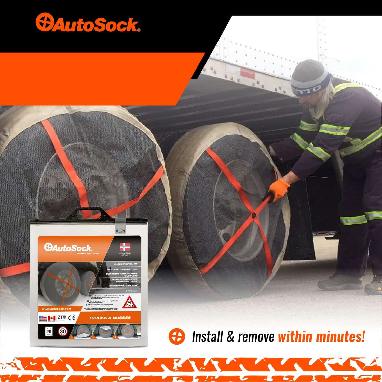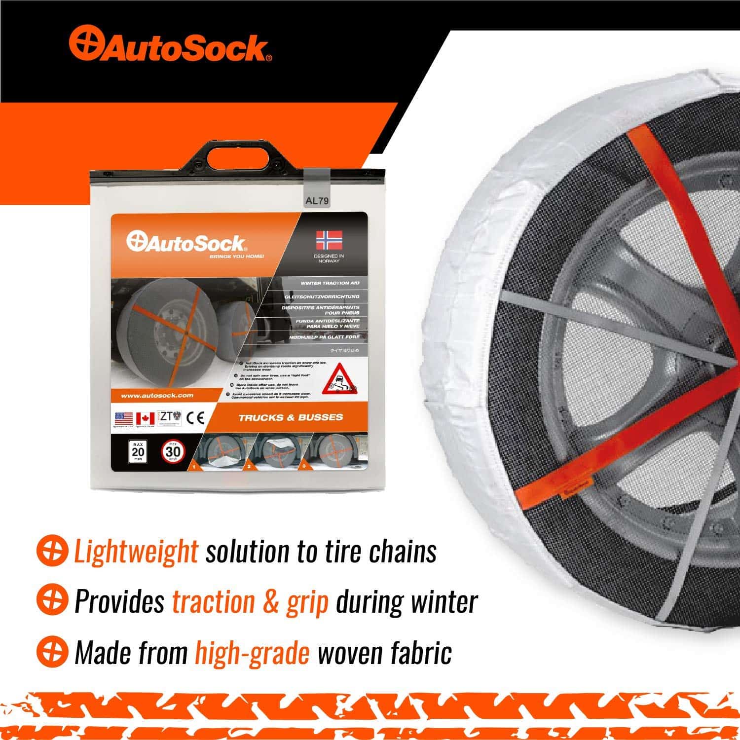 ¿Buscas una mejor alternativa a las pesadas y complicadas cadenas de neumáticos de nieve que funcionan con vehículos grandes? Aquí tienes AutoSock AL79, un dispositivo de tracción fabricado con tejido de alta calidad con un elastómero que resiste el daño por la presión constante y los cambios extremos de temperatura. Es posible que no estés familiarizado con este equipo, ¡pero eso se debe a que los calcetines para nieve en neumáticos de camiones y autobuses ofrecen soluciones innovadoras para conducir en invierno! ¡No te preocupes; esta alternativa a las cadenas de nieve es compatible con el sistema de frenos avanzado de tu camión para viajes más seguros. Además, estos calcetines para neumáticos son fáciles de instalar y quitar, ¡permitiéndote comenzar a conducir en minutos después de la instalación! Primero, debes estirar la banda elástica negra sobre la mitad superior del neumático y jalar el AutoSock hacia abajo. Después, mueve el autobús, camión o semirremolque hasta que los AutoSock montados estén debajo de la rueda. Ahora puedes estirar la tela sobre las partes restantes del neumático. AutoSock no solo funciona con autobuses, camiones y remolques, ya que también está disponible en diferentes tamaños y para varios tipos de vehículos. Puedes elegir entre calcetines para automóviles, SUV y camionetas. Además, este equipo presenta un fácil almacenamiento debido a su diseño ligero y construcción. ¡Además de mejorar la eficiencia de combustible de tu vehículo, esta ayuda de tracción para coches y camiones previene daños en el borde de la rueda! ¡Así que puedes experimentar todas las ventajas de las cadenas para neumáticos de coches, camiones y autobuses sin el peso adicional! AutoSock AL79 para camiones y autobuses: ¡Un dispositivo de tracción alternativo de primera calidad para conducir sobre nieve y hielo!