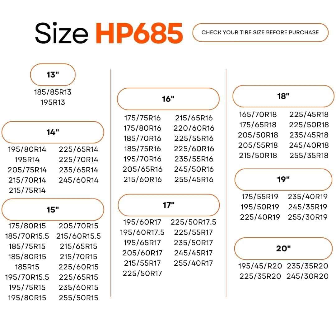La AutoSock HP685 es la última innovación en tecnología de calcetines de nieve para neumáticos. Con un agarre innovador diseñado para la conducción en la nieve y en condiciones climáticas adversas, este paquete de 2 calcetines de nieve ofrece seguridad y fiabilidad superiores en comparación con las cadenas de neumáticos tradicionales. Su instalación de 3 pasos permite instalarlos en cuestión de minutos, eliminando la necesidad de lidiar con las complicadas cadenas de neumáticos. Además, los calcetines de nieve AutoSock son reutilizables y se pueden plegar de forma conveniente para un almacenamiento compacto. Cumpliendo con las normas de carretera tanto en América como en Europa, la AutoSock HP685 es la elección ideal para viajar con tranquilidad en terrenos nevados y resbaladizos.