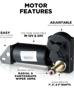 AutoTex desarrolla partes automotrices de calidad superior para limpiaparabrisas, motores, brazos y más. Este motor de alto rendimiento está completo con ajustes de ángulo ajustables. La carcasa cuenta con sellado marino de calidad para todo tipo de clima y es completamente resistente a la corrosión en el exterior. Este motor es perfecto para limpiaparabrisas de alta resistencia y uso frecuente.