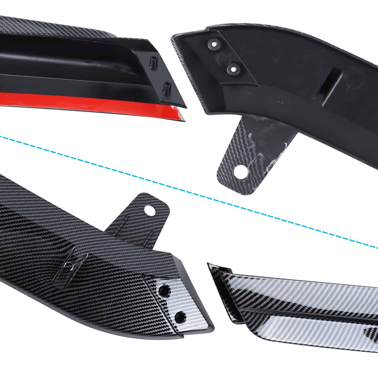 Descripción: Tipo: Labio delantero del parachoques, color: Negro de fibra de carbono. Paquete incluye: 3 PCS por paquete con tornillos. Material: ABS. Ubicación en el vehículo: Delantero, Inferior. AJUSTE: Honda Civic Sedan y Hatchback 2022-2023 de 4 puertas. Característica: 1. Libre de problemas al pasar. 2. Divide el aire y redirige el viento. 3. Protege el parachoques delantero. 4. Montaje recto, fácil de instalar, ligero y duradero, te dará una sensación deportiva sin hacerte lucir demasiado radical.