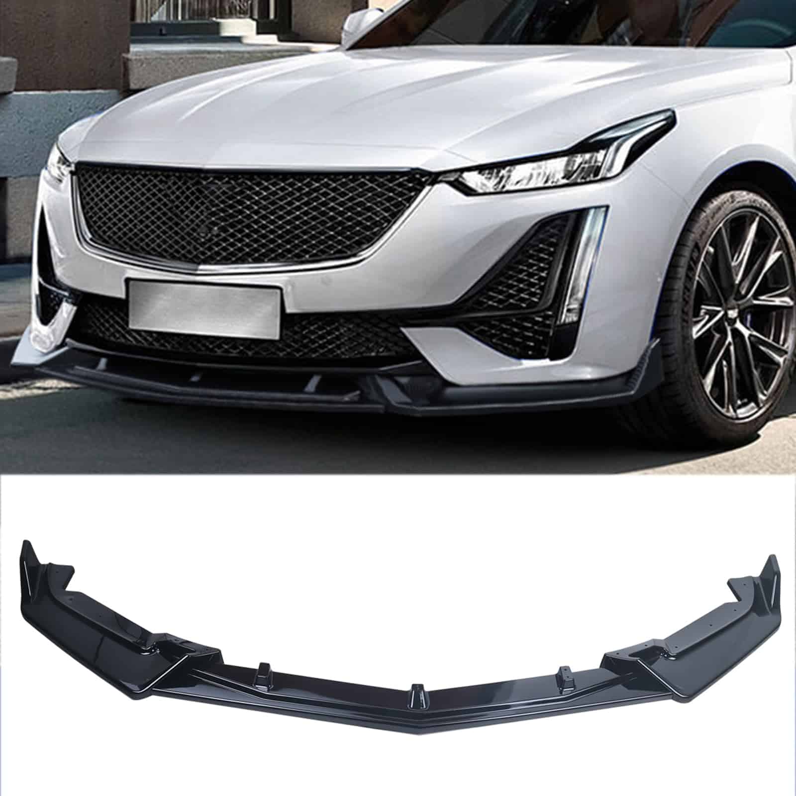 Descripción: Tipo: Labio Delantero del Parachoques Color: Negro Brillante Paquete incluye: 3 PCS por paquete con pernos. Material: ABS Colocación en el vehículo: Delantero, Parte Inferior COMPATIBILIDAD: 2020-2023 Cadillac CT5 Característica: 1. Paso sin problemas 2. divide el aire y redirige el viento. 3. Protege el parachoques delantero Montaje recto, fácil de instalar, ligero y duradero, le dará una sensación deportiva sin hacer que parezca demasiado radical.