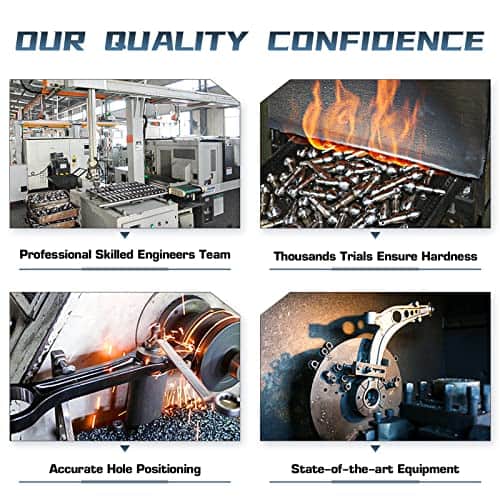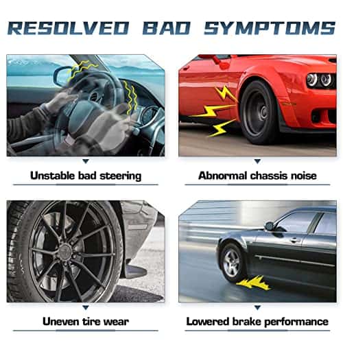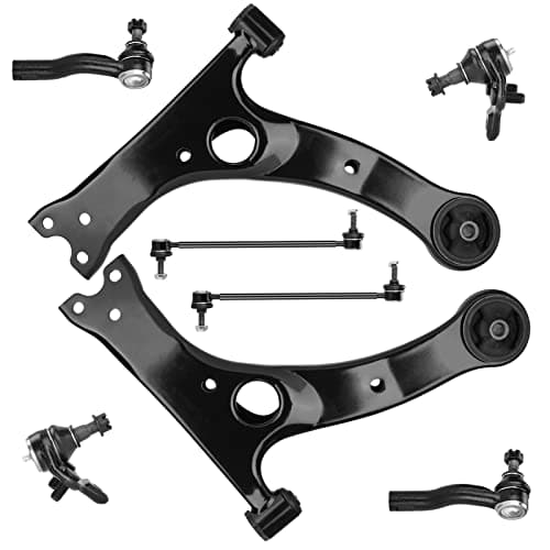 Incluye: 2 x Junta de Rótula Inferior Delantera, 1 x Brazo de Control Inferior Delantero – Lado del Conductor, 1 x Brazo de Control Inferior Delantero – Lado del Pasajero, 1 x Extremo de Barra de Acoplamiento Externo Delantero – Lado del Conductor, 1 x Extremo de Barra de Acoplamiento Externo Delantero – Lado del Pasajero, 2 x Vínculo del Extremo de la Barra Estabilizadora Delantera