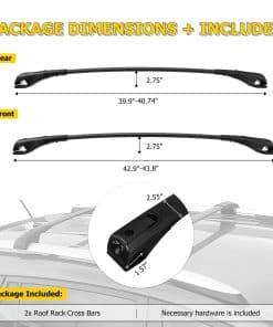 2. Dimensiones: Delanteras: 42.3″~43.5″(longitud ajustable) x 3″(ancho) x 3″(altura). Traseras: 40.2″~41.3″(longitud ajustable) x 3″(ancho) x 3″(altura).