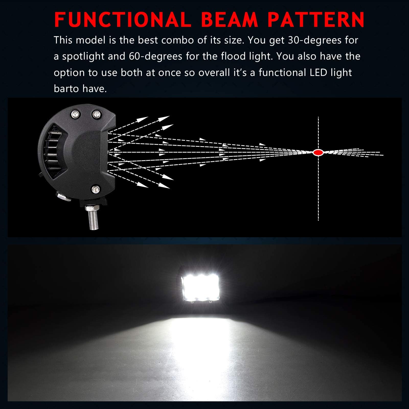 Diseño resistente: Carcasa de aluminio de alta calidad pintada de negro, soporte de montaje ajustable de acero inoxidable y lentes irrompibles con resistencia al agua IP67, duradero para resistir cualquier condición adversa.