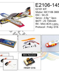 Características: – Avión SAKURA EPP 3D mejorado – Estructura duradera y ligera de EPP con resistencia fuerte – Perfecto para principiantes en entrenamiento de vuelo acrobático – Rendimiento de vuelo optimizado para flexibilidad en el vuelo – Avión F3P micro perfecto para vuelo en interiores y parques – Apariencia hermosa con recubrimiento brillante – Múltiples combos para elegir Especificaciones: Envergadura: 420mm Longitud: 380mm Peso de vuelo: 62g Piezas recomendadas (No incluidas): Motor: MC1106 3800KV ESC: 5A 2S Servo: 2g 3 hélice: 5 pulgadas Radio: 4CH BATT: 2S 150mAh Paquete incluido: 1 kit de avión 3D aerobático EPP de micro SAKURA con una envergadura de 420mm (Desarmado) 1 Motor MC1106 3800KV 1 ESC 5A 2S 3 Servos de 2g 1 hélice de 5 pulgadas 1 batería 2S 150mAh 1 Mini RX 4CH (1.00pin 3P) (Protocolo: Frsky-D16) 1 Manual de instrucciones