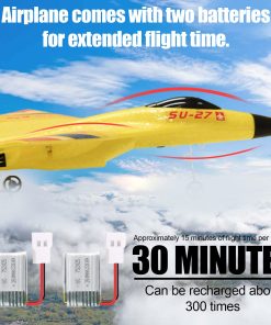 Este avión RC amarillo para niños y niñas está hecho de material de espuma EPP calificado y componentes electrónicos, super ligero, flexible, resistente al impacto por extrusión. La punta del avión está hecha de material de silicona que es más resistente al impacto. Incorpora giroscopio inteligente y sistema de estabilización de vuelo automático, fácil de controlar y volar, muy adecuado para niños y principiantes. Las alas inferiores del avión de control remoto están equipadas con luces LED de colores brillantes, que se ven geniales cuando vuelan de noche. Incluimos dos baterías que pueden reemplazarse en cualquier momento para extender el tiempo de vuelo. El tiempo de vuelo es de aproximadamente 15-20 minutos por batería. La distancia de control remoto del avión RC es de 300-400 pies. Proporcionamos 2 juegos de tren de aterrizaje, hélices y baterías para los amantes de este avión RC amarillo/azul. Cuando sea necesario reemplazar estas partes del avión RC, puedes instalar fácilmente otro juego de tren de aterrizaje, hélices y baterías en cualquier momento sin tener que pensar ni preocuparte por cómo obtenerlos.
