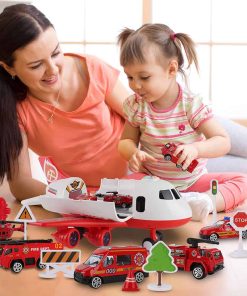 Avión de Juguete Dwi Dowellin con Coches de Bomberos y