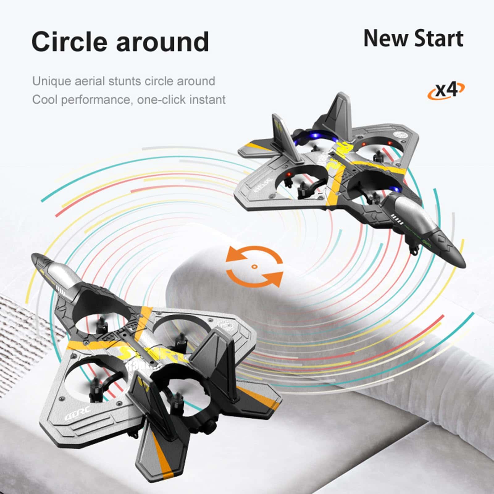 Aeronave de 2.4GHz 4CH, incluidos 4 vuelos direccionales, ascenso, descenso, giro a la izquierda y giro a la derecha.