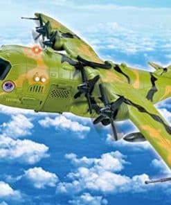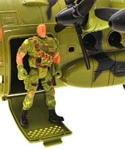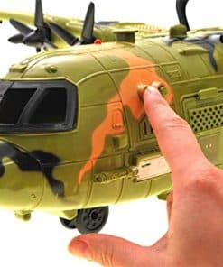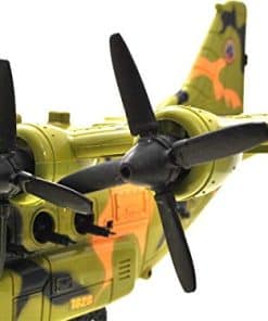 Avión militar C130 Bomber de la fuerza aérea hecho para niños que son fanáticos de los juguetes relacionados con el ejército. El avión viene con luces y sonidos. También tiene mini soldados y una compuerta que se puede abrir y cerrar. Perfecto para niños que aman la acción militar. Horas de juego imaginativo.