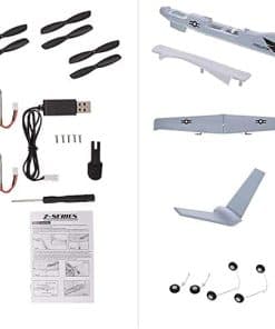 Paquete Incluido: 1 Avión de radiocontrol (versión KIT) 1 Control Remoto 1 Batería Lipo 1 juego de tren de aterrizaje + 1 juego de tren de aterrizaje adicional 1 hélices + 2 hélices adicionales 1 Cargador USB XH2.0 1 Manual de usuario 1 Destornillador