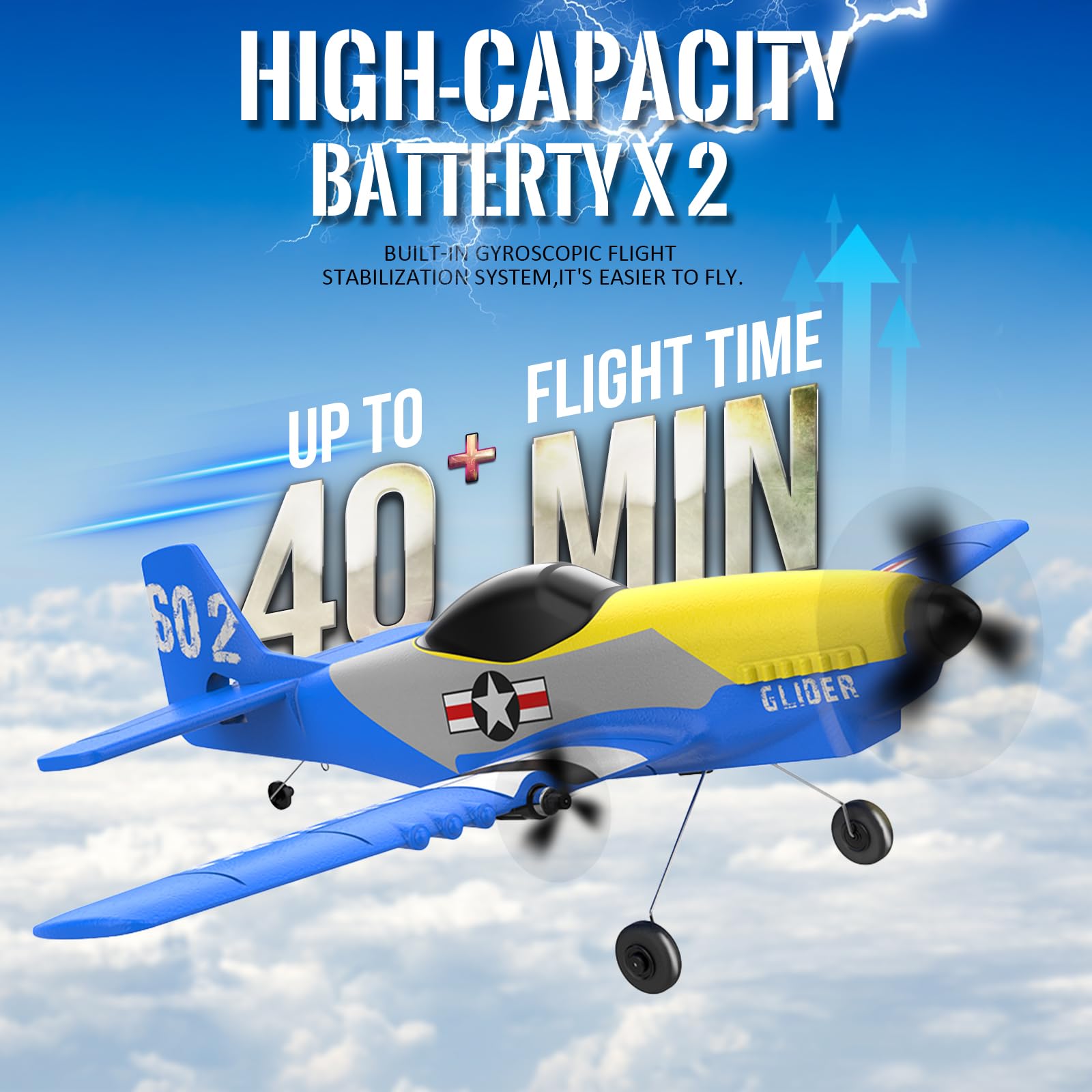4. LARGO TIEMPO DE VUELO – Este avión RC tiene motores duales incorporados para aumentar la potencia y la velocidad, ahorrando efectivamente la vida de la batería. Incluye dos baterías recargables de 3.7V 350mAh que proporcionan aproximadamente 20 minutos de diversión voladora sin parar.