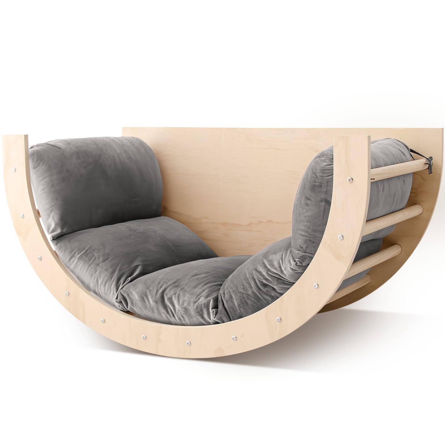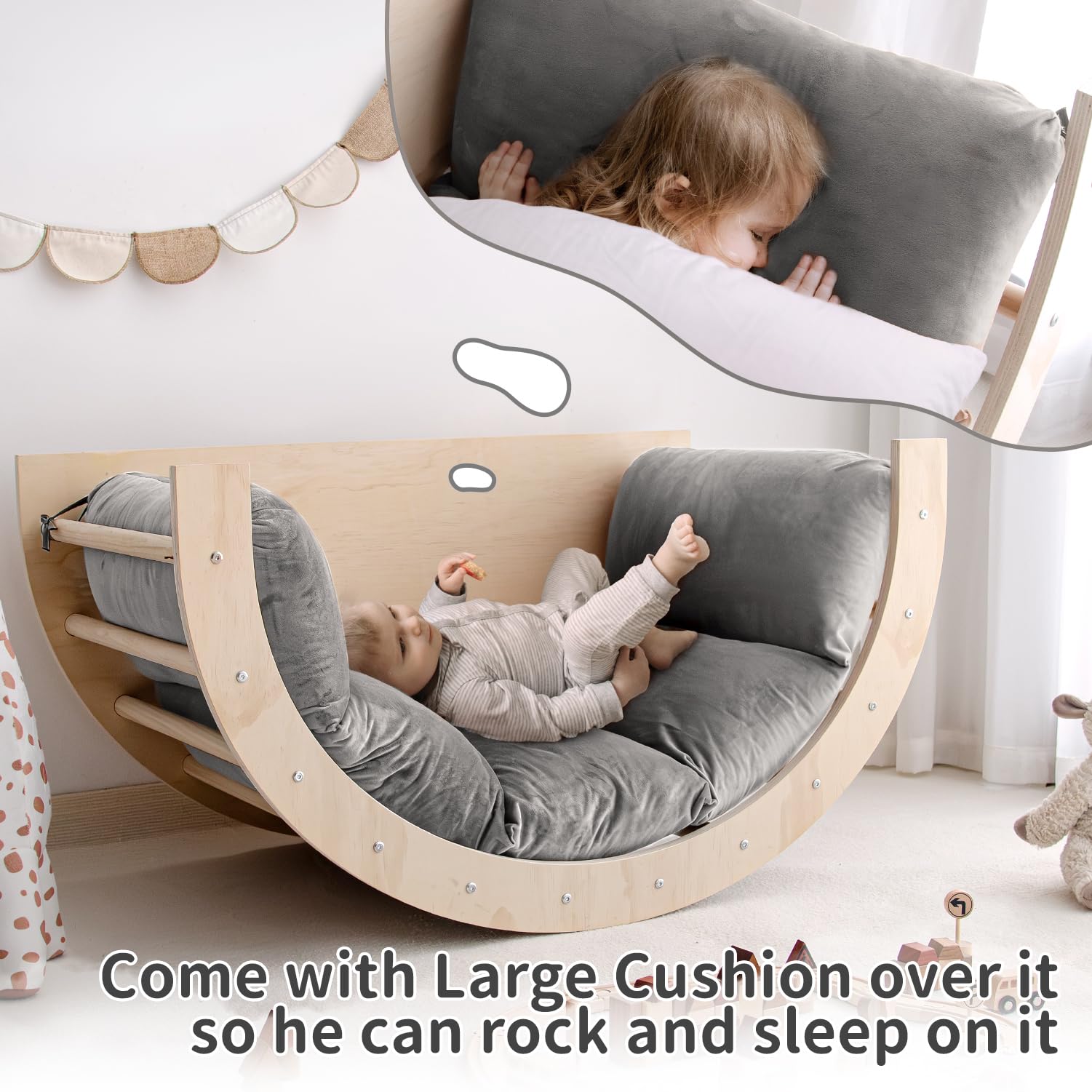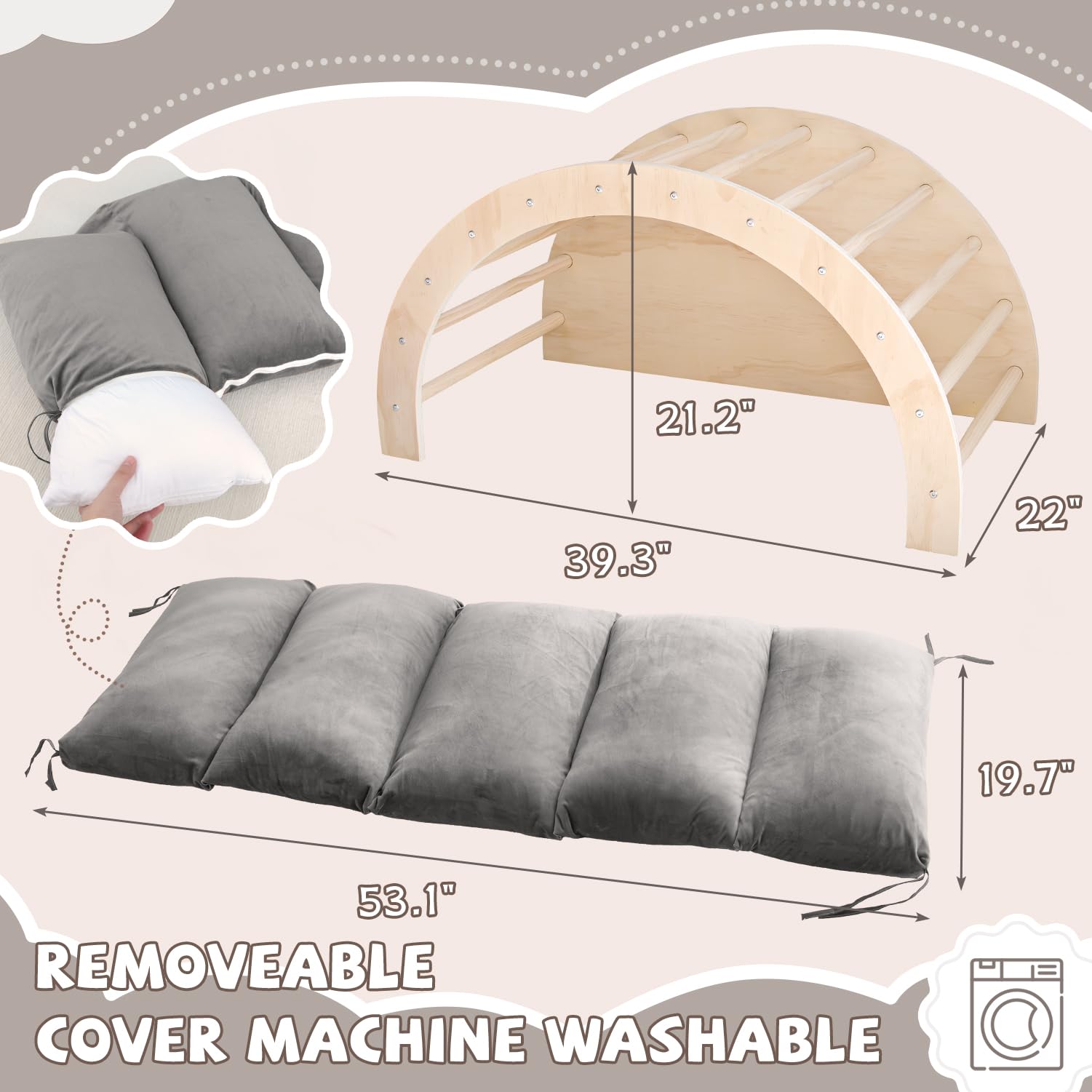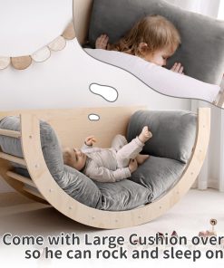 2. Arco hecho a mano con Cojín Acogedor que puedes usar como una mecedora para recostarte tranquilamente, funda de almohada extraíble, puedes lavarla en la lavadora, fácil de limpiar, el Juguete de Arco de Escalada está hecho de madera ecológica y está lijado a mano, por lo que es seguro de usar.