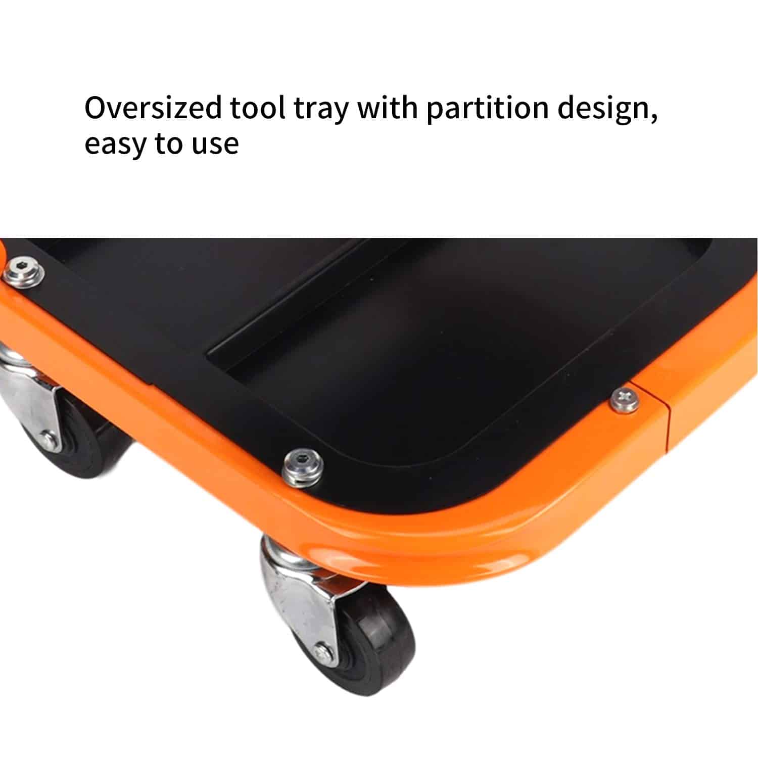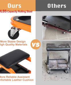 El asiento rodante de mecánico pesado de awagas es la solución perfecta para sus necesidades en el taller o garaje. Con una capacidad de 400 libras, podrá trabajar con comodidad y eficiencia. Equipado con (4) ruedas giratorias de 360 grados, este asiento le permite moverse con facilidad y precisión. Construido con acero tubular cromado, este asiento es estable y duradero a largo plazo. El cojín grueso y ampliado proporciona un soporte cómodo mientras trabaja en autos, camiones y otros vehículos. La bandeja de herramientas segmentada mantiene sus herramientas y equipos organizados y al alcance rápido, aumentando su productividad en el taller. Ya sea en su tienda, garaje, taller de reparación de automóviles o almacén, este asiento de mecánico con ruedas es la opción ideal para trabajar con comodidad y eficacia. ¡Ordene el suyo hoy y mejore su experiencia de reparación de vehículos!