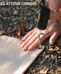 AWISEFULL Tapete para fogatas a prueba de fuego para estufa de leña con Solo Stove para parrilla exterior en cubierta de madera BBQ Lawn 24″ x 32″ es un tapete de 0.5 mm de grosor con dimensiones de 24 x 32 pulgadas que es plegable y fácil de transportar. Está hecho de fibra de vidrio engrosado y recubrimiento de aislamiento, lo que proporciona un mejor rendimiento de aislamiento y protege eficazmente el área en contacto con la estufa y el suelo de quemaduras. Con agujeros en las esquinas para fijación con clavos al suelo y resistente al desgaste y a las arrugas, este tapete es lavable y reutilizable, lo que facilita su limpieza con mangueras de jardín o un paño húmedo. Puede usarse con seguridad a temperaturas de hasta 800 F y es ampliamente aplicable en diversas áreas tanto en interiores como en exteriores, como cubiertas, terrazas, campamentos al aire libre, céspedes, jardines, entre otros.
