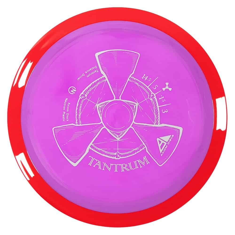 El Axiom Discs Neutron Tantrum es un disco de golf de distancia que permite a los lanzadores poderosos dar forma a todo tipo de tiros gracias a sus líneas envolventes y potencial de hyzerflip. Con un borde grande, este driver de distancia es conocido por sus vuelos estables con un planeo impresionante. Con una clase de 24,5 mm y especificaciones de velocidad 14.5, planeo 5, giro -1.5 y desvanecimiento 3, el Tantrum es una excelente opción para los jugadores experimentados. Hecho de plástico Neutron, el material más premium de Axiom, ofrece un aspecto y tacto excepcionales con una gran durabilidad. El disco de golf Tantrum está aprobado por la PDGA para todo el juego profesional. ¡Hazte con el Neutron Tantrum y lleva tu juego de disco golf al siguiente nivel!