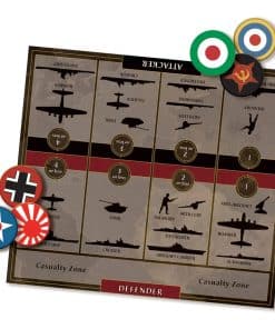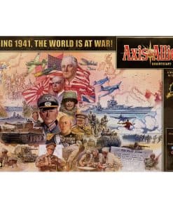 El año es 1941. La máquina de guerra del Eje parece invencible. Los Balcanes han caído. Pearl Harbor ha sido atacado, y Rommel tiene a los británicos huyendo en el norte de África. En este punto explosivo de la historia, Axis & Allies Anniversary Edition te desafía a ti y a tus oponentes a decidir el resultado de la Segunda Guerra Mundial. Como una de las potencias mundiales que luchan por la supremacía en 1941, debes liderar la ofensiva militar de tu país. Axis & Allies celebra su 40 aniversario con el relanzamiento de esta edición de lujo, diseñada y desarrollada por Larry Harris, el creador original de Axis & Allies. Esta edición incluye un nuevo y enorme tablero de juego de 24″ por 46″, nuevas unidades de crucero e Italia como la tercera nación del Eje.