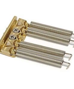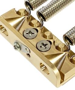 ¡Deja de tener tu tono arañado por esa vieja garra de resorte! El Tone Claw es una garra de resorte robusta diseñada con una placa de sujeción bloqueante para bloquear los resortes en los extremos de la cejuela. Mecanizada por CNC a partir de latón sólido y con 4 veces la masa de una garra tradicional, el Tone Claw está diseñado para aumentar el sustain y mejorar las cualidades tonales, mientras también ayuda a la estabilidad de afinación al evitar que los resortes se desplacen o salgan durante un uso intenso de tremolo. Con una garra tradicional, la energía vibracional transferida desde el bloque de sustain a través de los resortes se disipa al llegar a la garra debido a la poca área de contacto entre los extremos de la cejuela de resorte y las lengüetas de la garra estándar, así como a la delgadez de una placa de lata estándar. La placa de sujeción bloqueante del Tone Claw, en conjunto con los postes de ajuste (donde se conectan los extremos de la cejuela de resorte), aumenta significativamente el contacto entre los resortes y la garra. En lugar de terminar su camino, esta energía vibracional de los resortes se transfiere al Tone Claw y se envía de vuelta a través de los resortes y hacia el bloque de sustain mejorando así el sustain. La instalación es fácil y un reemplazo directo para la mayoría de las garras de resorte existentes como las de Fender, Floyd Rose, PRS, Ibanez, y muchas otras. El kit incluye todo el hardware necesario para la instalación: cuatro resortes de acero de calidad y dos tornillos de montaje de garra. También se integra una pestaña de soldadura a tierra ajustable que se puede cambiar entre dos agujeros de montaje disponibles dependiendo de la orientación requerida. La garra está disponible en acabado de latón crudo o niquelado.
