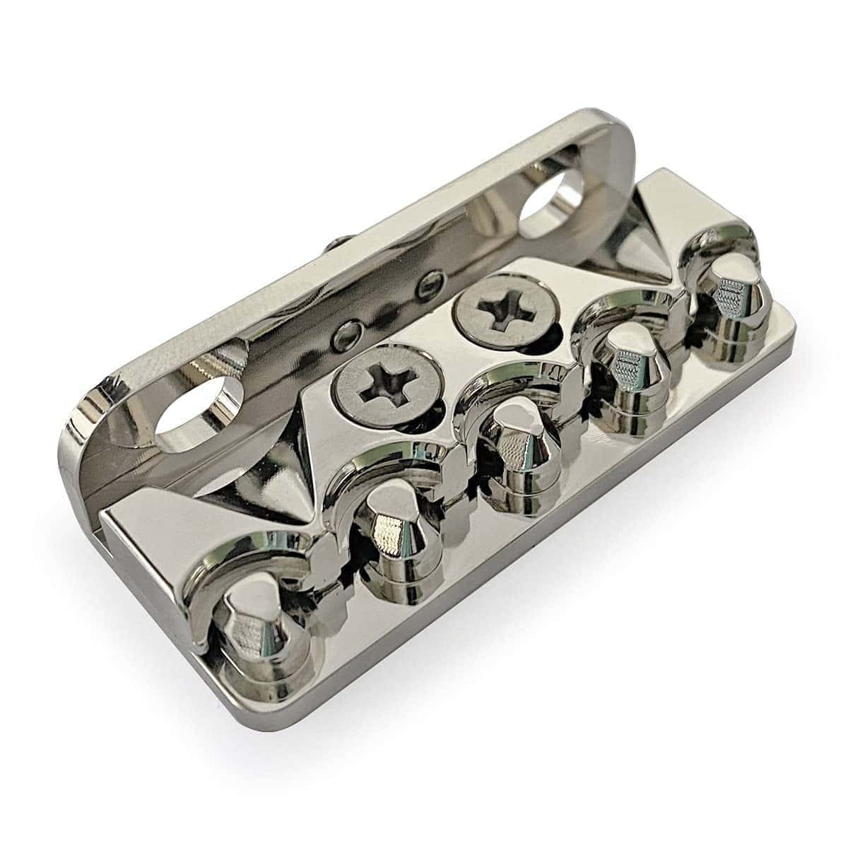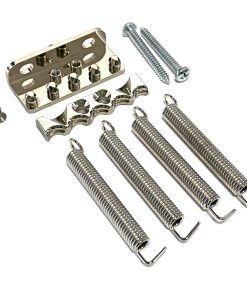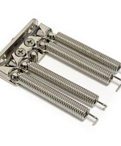 ¡Deja de tener tu tono arrebatado por esa antigua garra de resorte! El Tone Claw es una garra de resorte robusta diseñada con una placa de sujeción para bloquear los resortes en los extremos del aro. Fabricado mediante CNC en latón macizo y con 4 veces la masa de una garra tradicional, el Tone Claw está diseñado para aumentar el sustain y mejorar las cualidades tonales al mismo tiempo que ayuda a la estabilidad de la afinación al evitar que los resortes se desplacen o salgan durante el uso intensivo del trémolo. Con una garra tradicional, la energía vibracional transferida desde el bloque de sustain a través de los resortes se disipa al llegar a la garra debido a la escasa área de contacto entre los extremos del aro del resorte y las pestañas de la garra estándar, así como al grosor de una placa de lata estándar. La placa de sujeción con cierre del Tone Claw, en conjunto con los postes de ajuste (donde se conectan los extremos del aro del resorte), aumenta significativamente el contacto entre los resortes y la garra. En lugar de terminar su camino, esta energía vibracional de los resortes se transfiere al Tone Claw y se envía de vuelta a través de los resortes y hacia el bloque de sustain, mejorando así el sustain. La instalación es fácil y un reemplazo directo para la mayoría de garras de resorte existentes, como las de Fender, Floyd Rose, PRS, Ibanez y muchas otras. El kit incluye todos los herrajes necesarios para la instalación: cuatro resortes de acero de calidad y dos tornillos de montaje de garra. También se integra una pestaña de soldadura de tierra ajustable que se puede cambiar entre dos agujeros de montaje disponibles dependiendo de la orientación requerida. La garra está disponible en latón crudo o acabado niquelado.