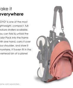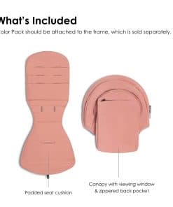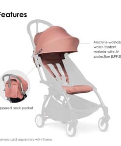 Compuesto por un cojín del asiento y un toldo, el Pack de Color 6+ está diseñado para ser utilizado con el Marco del Cochecito Babyzen YOYO+ (se vende por separado) para crear un cochecito ágil y ligero, construido específicamente para facilitar el desplazamiento y la conveniencia de viajar en avión con su hijo.