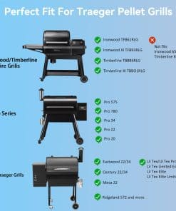 La parrilla griddle BAC609 se ajusta perfectamente a las parrillas Traeger: ridgeland 572, pro 575, pro series 22, pro 780, pro series 34, timberline xl, traeger xl, BBQ07E, BBQ070, BBQ07ELE, traeger renegade pro, BBQ07C.01, traeger eastwood 22/34, lil pigs, traeger lil tex elite 22, bbq07c.03, renegade elite 20, traeger Pro 20, century 22, traeger heartland, lonestar 20, lonestar mesa 22, cabelas pro series 36 y más. Además, es compatible con diferentes modelos de parrillas Traeger, como: Pro 575 TFB57GLE/TFB57GZE; Pro 780 TFB78GLE/TFB78GZE; Pro 34 TFB88PZB/TFB88PUB; Pro 22 TFB57PZB/TFB57PUBO/TFB57PZBO; Pro 20 TFB52PUD; Eastwood 22/34 TFB42DVBO; Century 22/34 TFB88PLD; Mesa 22 TFB42PLF; Lil Tex Elite 22 BBQ07E, BBQ07E.06, TFB42LZB y más. Esta parrilla griddle de hierro fundido es una excelente opción para mejorar tu experiencia al cocinar en tu parrilla Traeger. ¡Aprovecha y consíguela ahora!