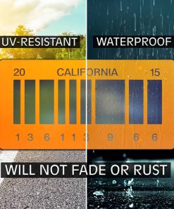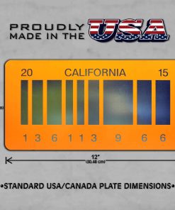 OUTATIME: La placa blanca de California OUTATIME se produce tal como se ve en el DeLorean Máquina del Tiempo del Doc Brown en la película Back to the Future. Incluido con la placa está el kit correcto de calcomanías reflectantes de registro de California 1986 y agosto. 2015: La placa naranja de California Futuristic 2015 se produce tal como se ve en el DeLorean Máquina del Tiempo del Doc Brown en la película Back to the Future 2. La placa del 2015 está reproducida exactamente como apareció en la pantalla. Ha sido diseñada inversamente utilizando la placa original utilizada en pantalla (no una prop de un parque temático), y está serigrafiada sobre una placa de aluminio de alto brillo cortada a medida. No hay calcomanías/vinilos/números/letras en la placa. Al igual que el original, no hay ranuras ni agujeros. La placa en realidad se ajusta a un soporte de placa Delorean sin cortar ninguna de las letras y está apretada en el borde como el original.