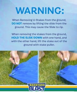 ¡Squirrel Products presenta el Tobogán Acuático Backyard Blast! Este set incluye un tobogán acuático, instrucciones de instalación y uso adecuado, estacas en forma de U para mantenerlo fijo al suelo, una bolsa para transportar las estacas y nuestras resistentes conexiones de estacas reforzadas en el tobogán (patente pendiente). Te deslizarás fácilmente en este tobogán acuático ya que está infundido con un agente súper resbaladizo. Utiliza cualquier manguera de jardín para conectarlo (manguera no incluida). No necesitas una colina para usar este tobogán acuático, pero es importante tenerlo en una superficie algo suave como césped. Por favor, no lo coloques sobre grava o rocas ya que eso puede provocar lesiones y desgarros en el tobogán.