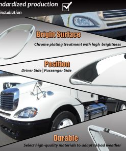 Moldura de Faro Delantero cromada para conductor y pasajero de BACLAUGH, diseñada para ajustarse perfectamente a los Freightliner Columbia fabricados entre los años 2001 y 2017. Esta moldura viene en un kit completo, incluyendo el lado del conductor y el lado del pasajero, sin necesidad de modificaciones. Con un atractivo tratamiento de cromado, esta moldura tiene una superficie brillante y es altamente duradera, manteniendo su aspecto incluso en condiciones climáticas adversas. Actualice la apariencia de su vehículo con esta moldura de faro delantero de alta calidad.