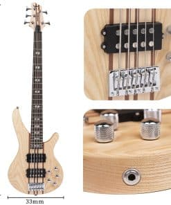 Material del cuerpo: Palisandro / Mástil de arce Material del mástil: Caoba Material de fondo / lados: Caoba Material del diapasón: Palisandro Mástil: Caoba Diapasón: Palisandro Pastillas: Pastillas activas H-H Controles: 2 Volumen 3 Tono Hardware: Cromo Acabado: Mate Embalaje Tamaño del paquete: 128X50X15 cm Peso: 6.500 kg