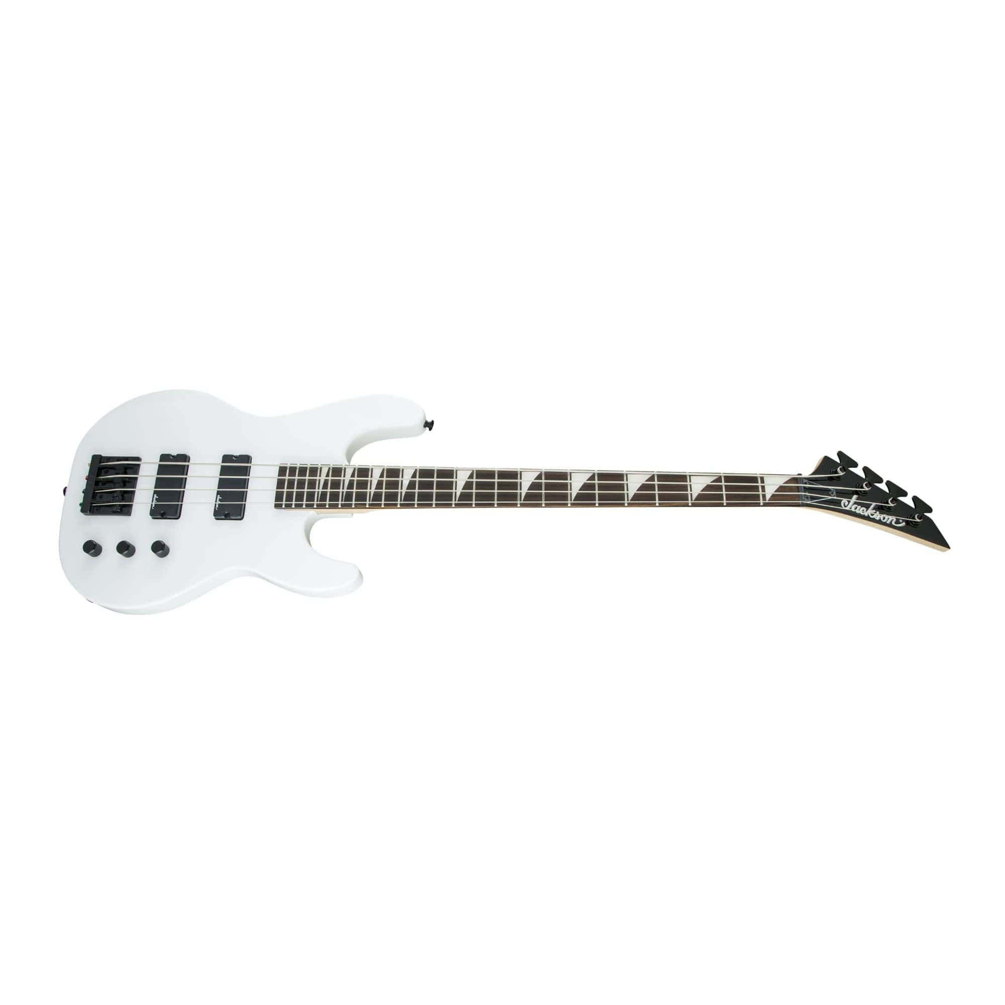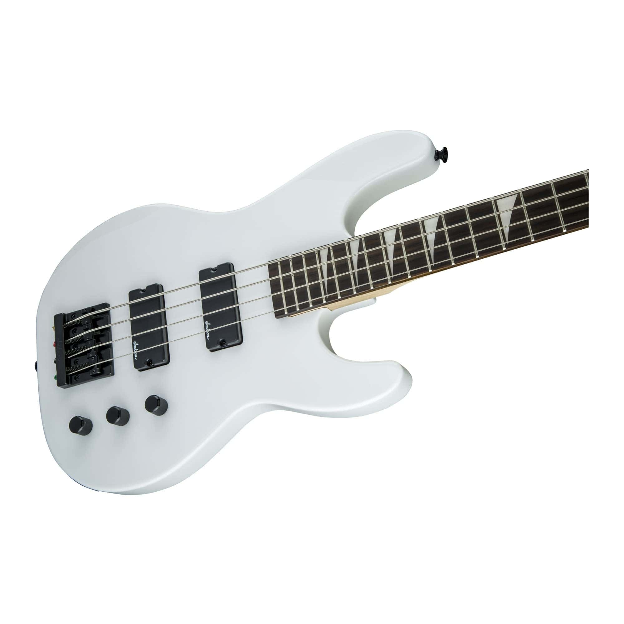 El bajo de 4 cuerdas Jackson s JS Series Concert Bass Guitar destaca por su sonido sísmico, estilo y asequibilidad. Cuerpo de álamo y diapasón de amaranto El bajo de 4 cuerdas Concert Bass JS2 de 34 pulgadas de escala cuenta con un cuerpo de álamo ligero y resonante, mástil de arce atornillado con refuerzo de grafito y unión en bisel, y un diapasón de amaranto de radio compuesto de 12-16 pulgadas con 24 trastes jumbo e inlays de aleta de tiburón perlados. Pastillas humbucking y puente Hi-Mass Cuenta con dobles pastillas humbucking de bajo de alto rendimiento Jackson que crean un rugido de baja frecuencia monstruoso, mientras que un puente Jackson HiMass proporciona estabilidad sólida, mejor sostenimiento y un tono más audaz. Rigurosamente sintonizadas y llenas de tonos gordos y contundentes, las pastillas humbucking de bajo de alto rendimiento de Jackson te ofrecen mucha pegada de baja frecuencia sin demasiado siseo en las frecuencias altas. Diapasón de radio compuesto de 12-16 pulgadas Jackson fue pionero en el uso del innovador diseño de radio compuesto de 12-16 pulgadas, en el que el diapasón se aplana gradualmente hacia el talón desde su perfil más redondeado en la cejuela. Esto permite acordes y riffs cómodos y naturales cerca de la cejuela, con una articulación óptima para shred y bendings más cerca del talón. Herrajes y acabado Este poderoso bajo está disponible en acabado blanco nieve con herrajes negros.
