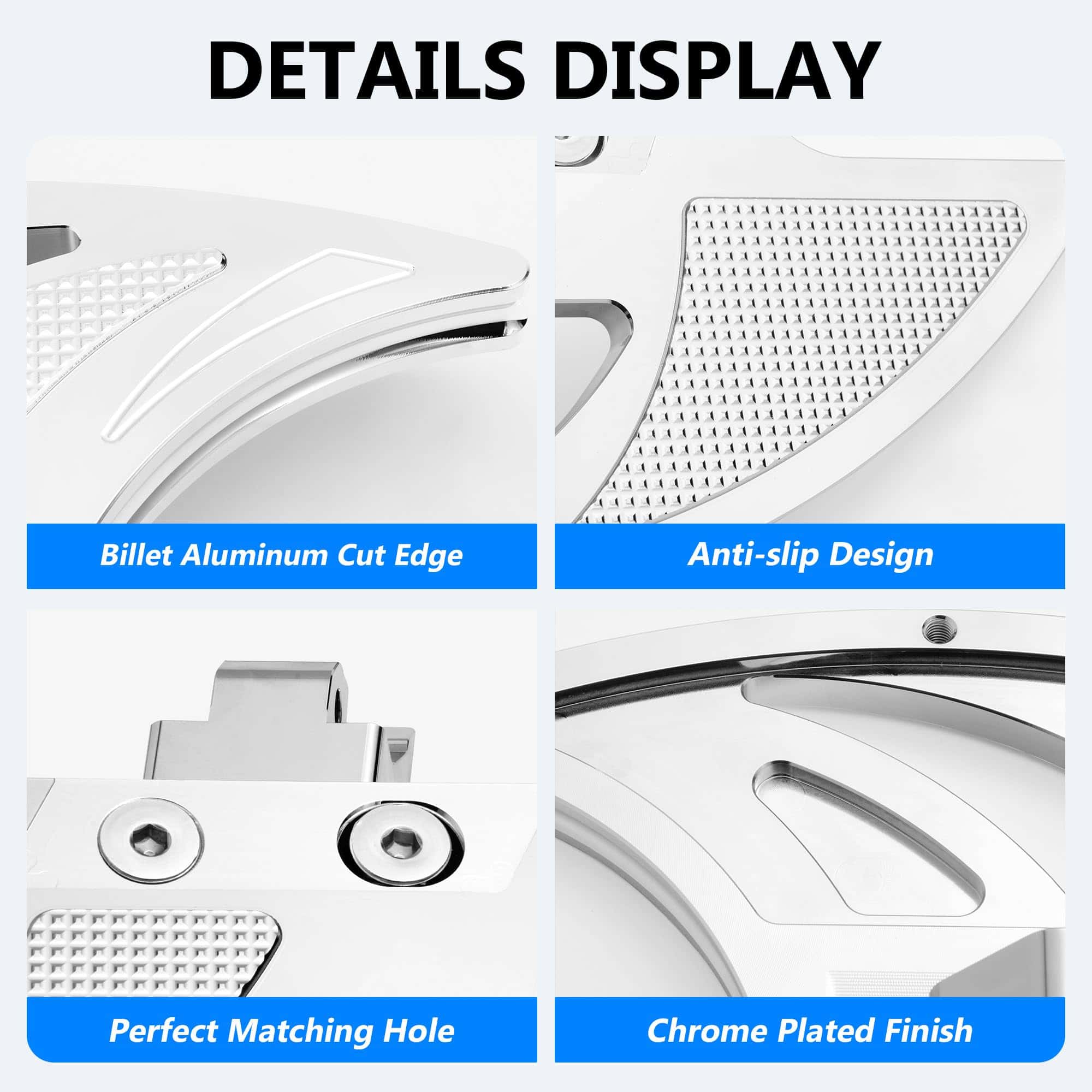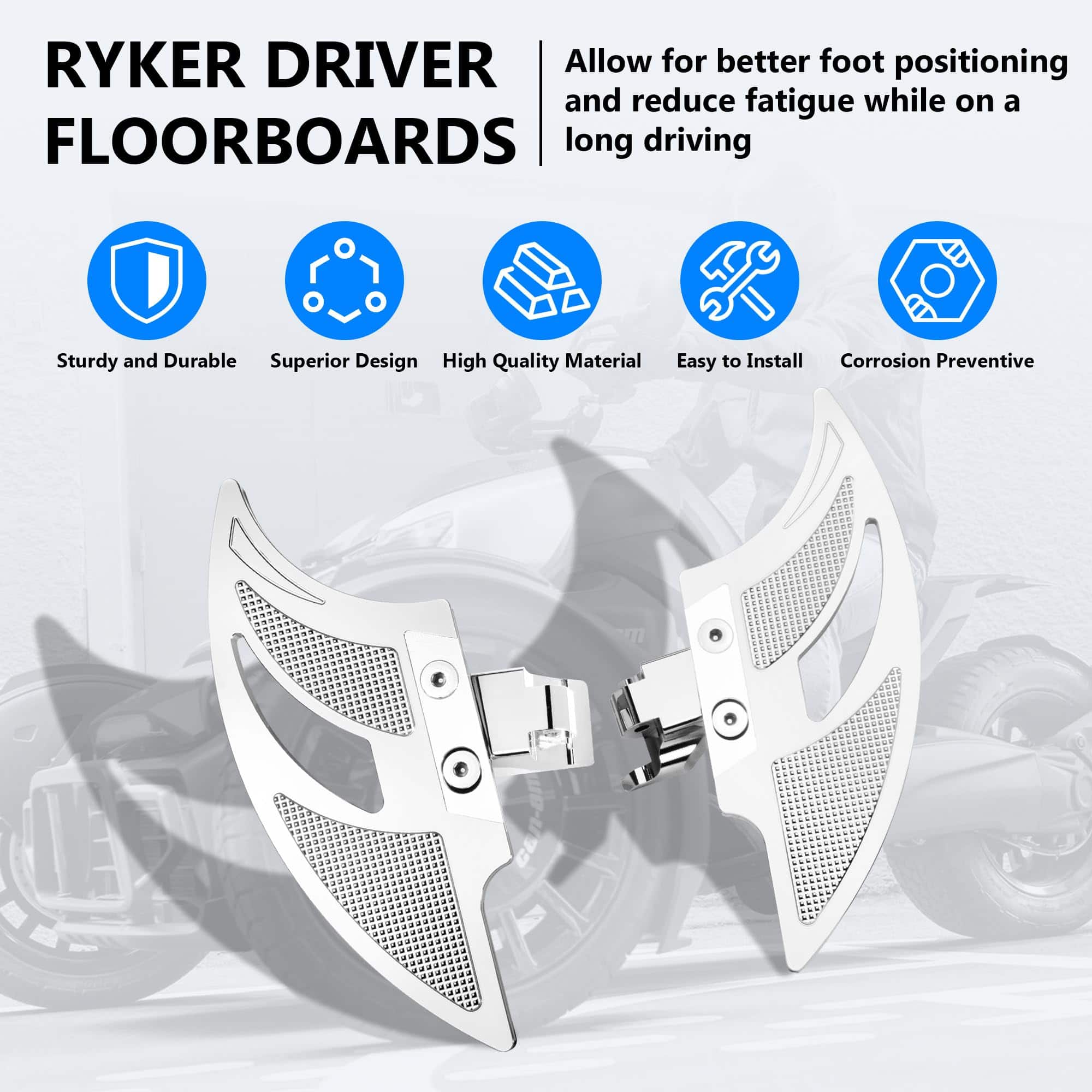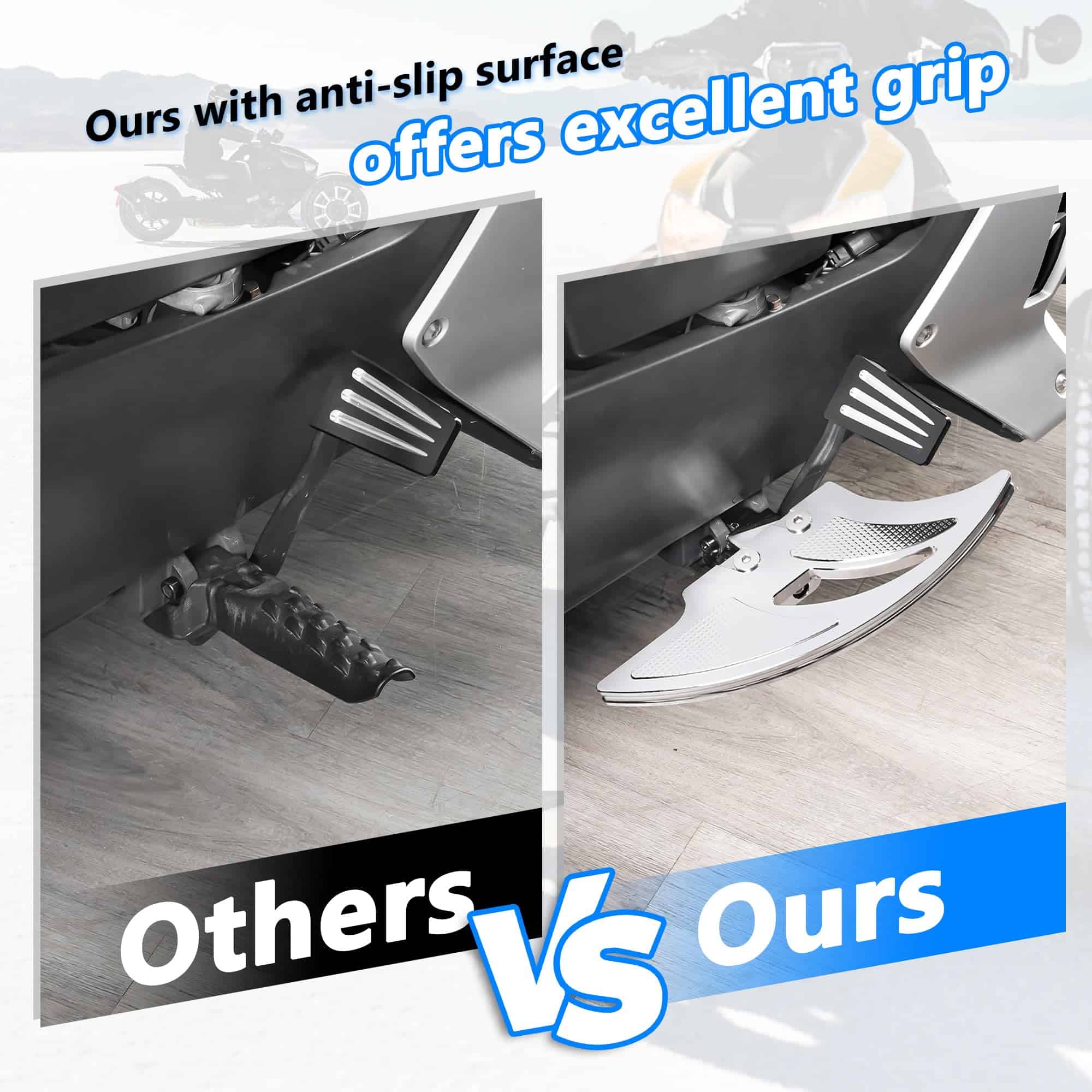 El juego de tableros para pies delanteros de BAKAFOH es ideal para decorar tu Ryker y asegurar que tus pies estén firmemente fijados durante cada viaje. Ofrece comodidad superior, estabilidad excelente y un amplio diseño para una mejor posición y menos fatiga en viajes largos. La superficie antideslizante ofrece un agarre excelente, incluso en condiciones húmedas o resbaladizas. Incluye 1 par de Tableros para pies de conductor en estilo cromado (1 Izquierdo y 1 Derecho) para Can-Am Ryker.