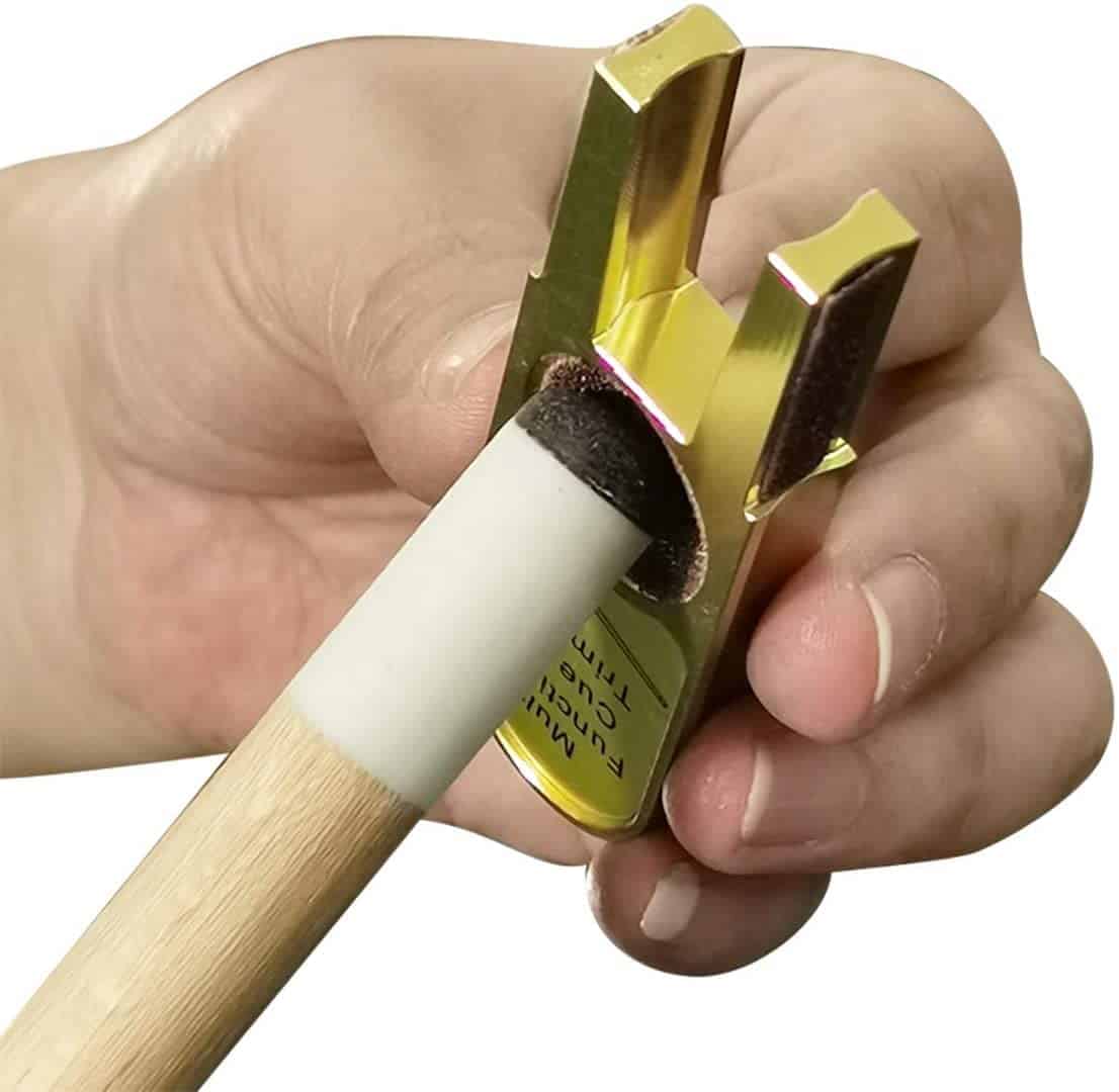 3. PUNTA DE TACO PERFECTA: Utilice el afilador de puntas de taco de esta herramienta de billar para encontrar un contorno de domo cómodo. Raspe ligeramente la punta de su taco de billar utilizando un movimiento de rotación, asegurándose de trabajar toda la punta de estos accesorios de tacos de billar.