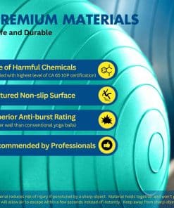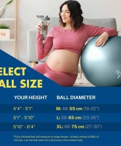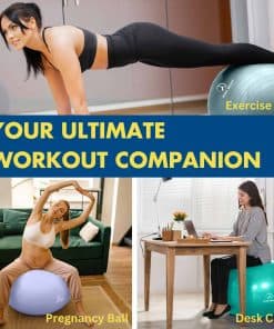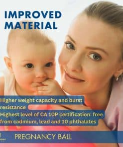 Incluido con la pelota de yoga para embarazadas viene un completo libro de ejercicios que incluye rutinas, estiramientos y técnicas de relajación para ayudarte a prepararte para el parto y recuperarte después del mismo. Con tecnología anti-explosión y una capacidad de peso superior a las 450 lbs, este balón de ejercicio grande cumple con la certificación CA 10P, un estándar más estricto que las pelotas de yoga estándar.