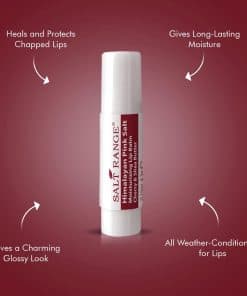 El bálsamo labial Salt Range formulado con cereza y manteca de karité es un bálsamo labial natural y orgánico perfecto para calmar e hidratar los labios secos y agrietados. El extracto de cereza en el bálsamo labial ayuda a suavizar y dar volumen a los labios, mientras que la manteca de karité proporciona nutrición profunda y protección. El bálsamo labial también es no graso y tiene un aroma natural. Este bálsamo labial es ideal para usar en todas las condiciones climáticas. Se utiliza para proteger los labios del aire frío y seco en invierno, o del aire caliente y seco en verano. El bálsamo labial también es seguro de usar en labios agrietados. El bálsamo labial es pequeño y fácil de llevar, lo que facilita llevarlo contigo sobre la marcha. Su textura ligera facilita su aplicación, y el bálsamo labial proporciona un hormigueo refrescante que mantiene tus labios suaves y suaves todo el día. Guarda este tubo de forma conveniente en un bolsillo o bolso, para que puedas tener un cuidado labial natural y nutritivo a mano. Usa este Bálsamo Labial Hidratante para que tus labios se sientan de lo mejor. Instrucciones: Aplica el bálsamo labial generosamente en tus labios tan a menudo como sea necesario. Guarda en un lugar fresco y seco lejos de la luz solar directa.