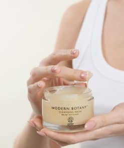 Bálsamo Limpiador Modern Botany que ayuda a limpiar, nutrir e hidratar la piel. Este bálsamo suave elimina suavemente el maquillaje, las células muertas de la piel e impurezas, al mismo tiempo que ayuda a hidratar y calmar la piel, dejando el cutis limpio, suave y refrescado. Diseñado para uso diario, se recomienda utilizar con un Paño de Muselina tibia para obtener los mejores resultados. Dermatológicamente probado como apto para pieles sensibles, seguro para madres embarazadas y lactantes, y adecuado para niños a partir de los 11 años. Con ingredientes botánicos como Manzanilla, Caléndula, Alga Serrada, Borraja y Lino Irlandés, conocidos por sus propiedades calmantes y sus beneficios hidratantes. Certificado Cosmos Natural 99.99%, lo que significa que está libre de aditivos artificiales.