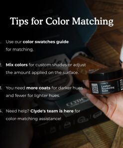 1. Bálsamo Reparador de Cuero Clyde’s, impulsado por la tecnología exclusiva ClydeColor, es un restaurador de color premium para cuero que revitaliza la riqueza natural de su cuero mientras prolonga su vida útil. Llena efectivamente los arañazos y funciona en una amplia gama de productos de cuero, desde asientos de coche, sofás, botas, chaquetas, monturas y bolsos. Ya sea que esté reparando el color del cuero o recoloreando completamente el cuero, este bálsamo ofrece resultados profesionales en el hogar.