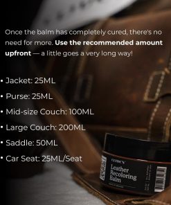 4. Resultados Duraderos Formulado para la durabilidad, este bálsamo ofrece un color duradero que se mantiene vibrante y resiste el desgaste con el tiempo. No necesitará reaplicaciones frecuentes, lo que lo convierte en una solución inteligente y eficiente para cualquier proyecto de reparación de color de cuero.