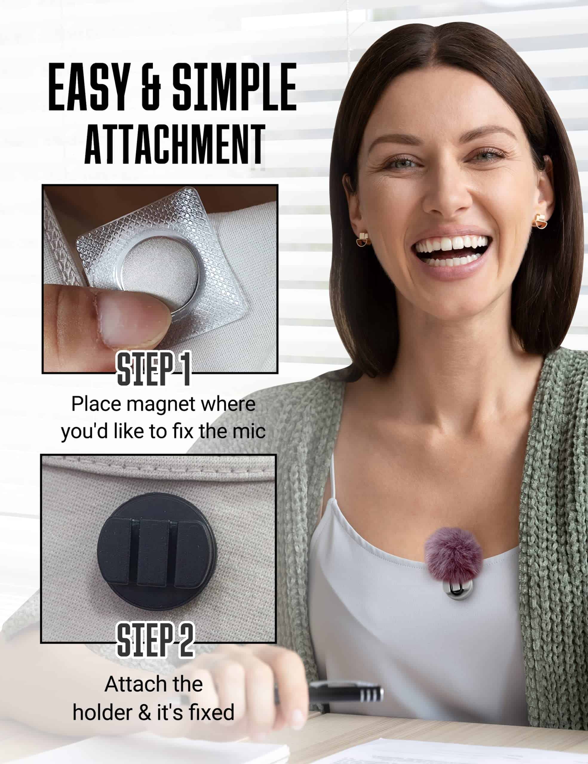 2. DURADERO CON MAYOR SUJECIÓN. Este soporte de micrófono tiene una cubierta magnética que ha sido mejorada para una sujeción más fuerte en la ropa para asegurar que los cables permanezcan en su lugar. Su nueva cubierta de uretano también es más duradera para resistir el desgaste diario.