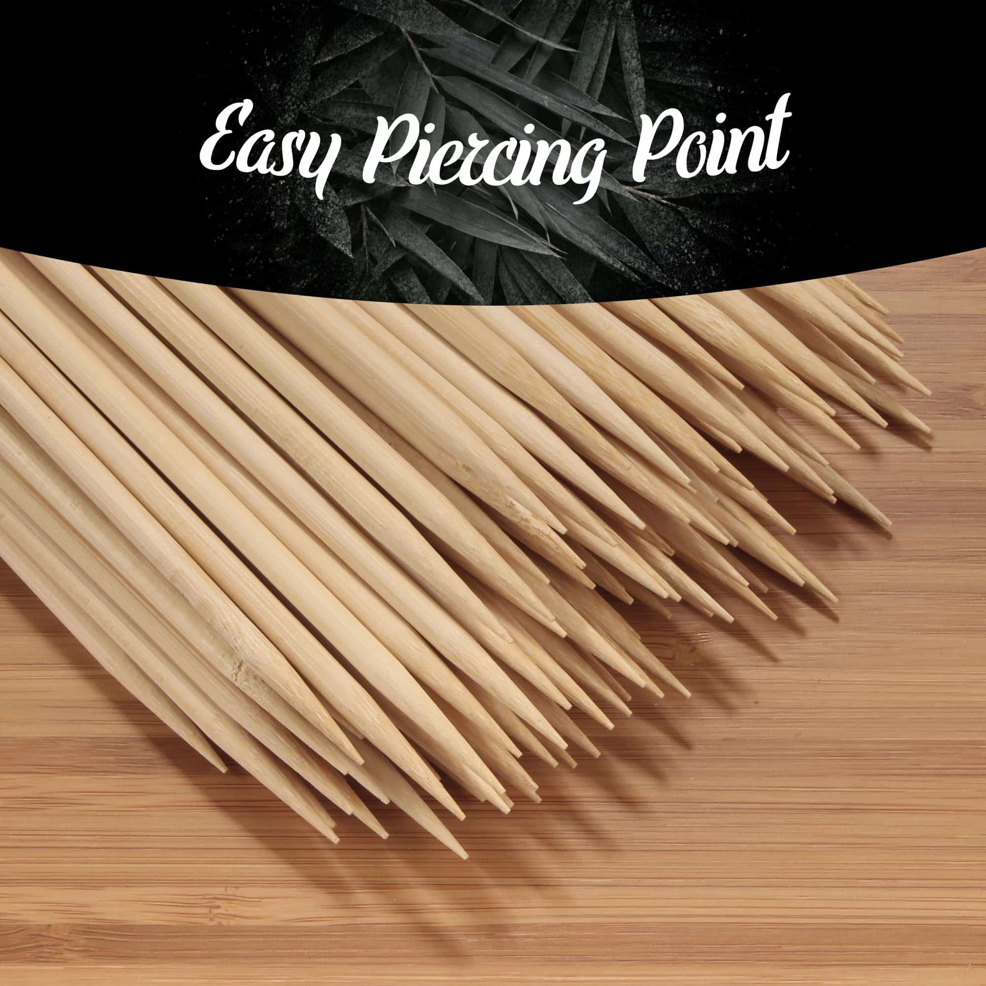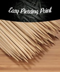 Brochetas de bambú multiusos para todo tipo de ocasiones. Úsalas en eventos corporativos, fiestas de vacaciones, food trucks, restaurantes, panaderías, bodas, campamentos, y mucho más. Las puntas afiladas facilitan el ensartado de alimentos más duros. Fabricadas con 100% bambú, una alternativa natural y renovable. Fuertes, resistentes y flexibles.
