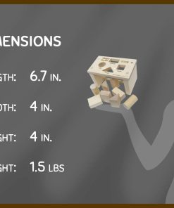 ¡Tu pequeño aprendiz disfrutará de este banco clasificador de formas! Formas de triángulo, cuadrado, rectángulo y círculo. Cada forma tiene 3 piezas. El banco mide 6.75″ de largo, 4″ de alto y 4″ de ancho. Para edades de 2 años en adelante.