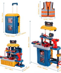 2. Convertible 3 en 1 Modelo de banco de trabajo de pie para niños, banco de trabajo de escritorio y maletín. Se puede jugar en el suelo, en la mesa o arrastrarlo. Un banco de herramientas para niños, tres formas de jugar, mejora enormemente la experiencia de juego y la imaginación de los niños.