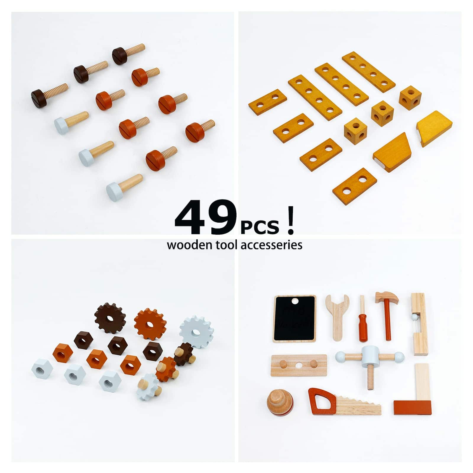 2. ACCESORIOS DE LUJO Y DIVERSIÓN: 49 piezas de herramientas y accesorios de juego todo en uno, ¡comparte alegría y juega con amigos juntos! Los niños podrían usar su imaginación libremente y tener infinitas posibilidades de construcción. Mientras hay un gran espacio de almacenamiento debajo del banco de herramientas, lo que facilita el almacenamiento y la limpieza rápida.