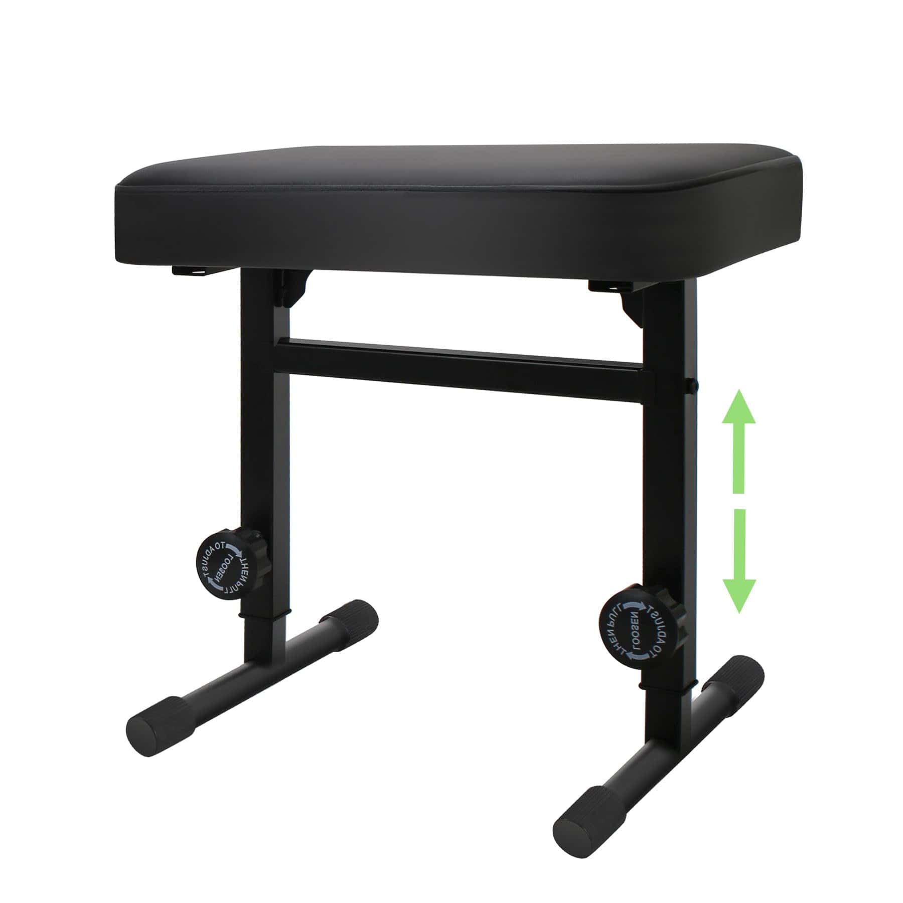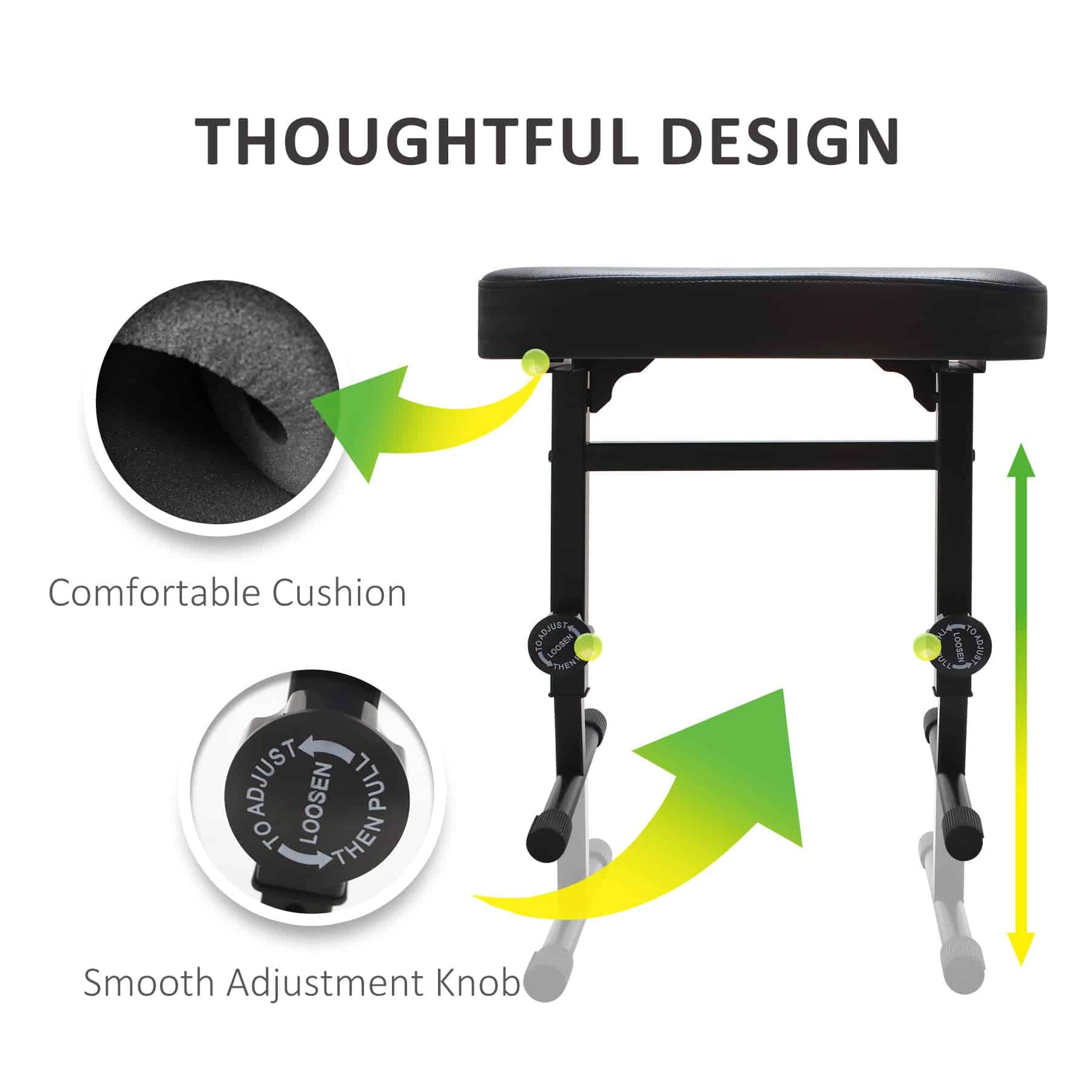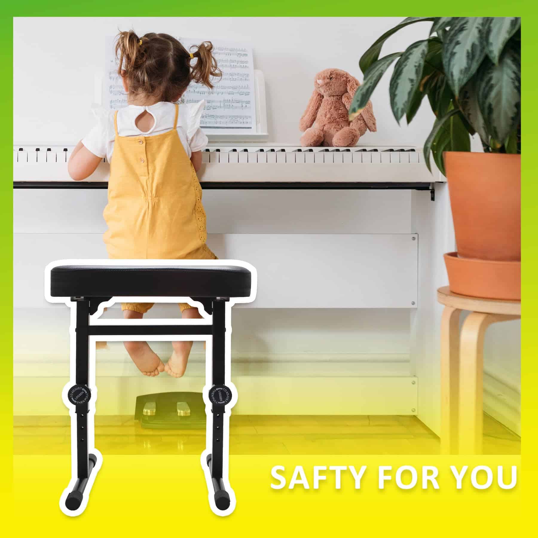 5. Configuración fácil y características seguras para niños: Con un peso de solo 9 libras, este banco de teclado ligero es fácil de transportar y configurar. Los dos perillas de seguridad con resorte en las patas de apoyo permiten un ajuste de altura sin esfuerzo y un bloqueo seguro, evitando movimientos rápidos y posibles accidentes, lo que lo hace seguro para que los niños lo usen.