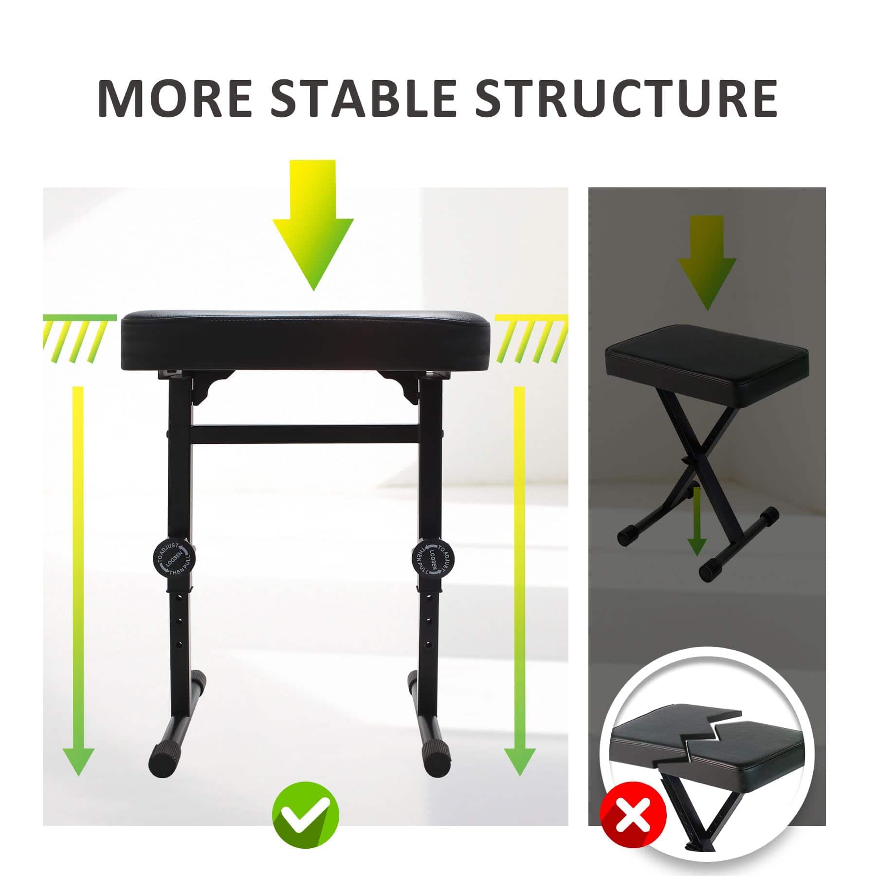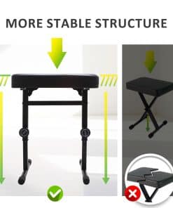 3. Diseño resistente y estable: Con un diámetro de tubo más grueso y una capacidad de peso de 330 libras, este banco de piano ofrece una estabilidad inigualable, garantizando la seguridad de tu hijo durante las interpretaciones.