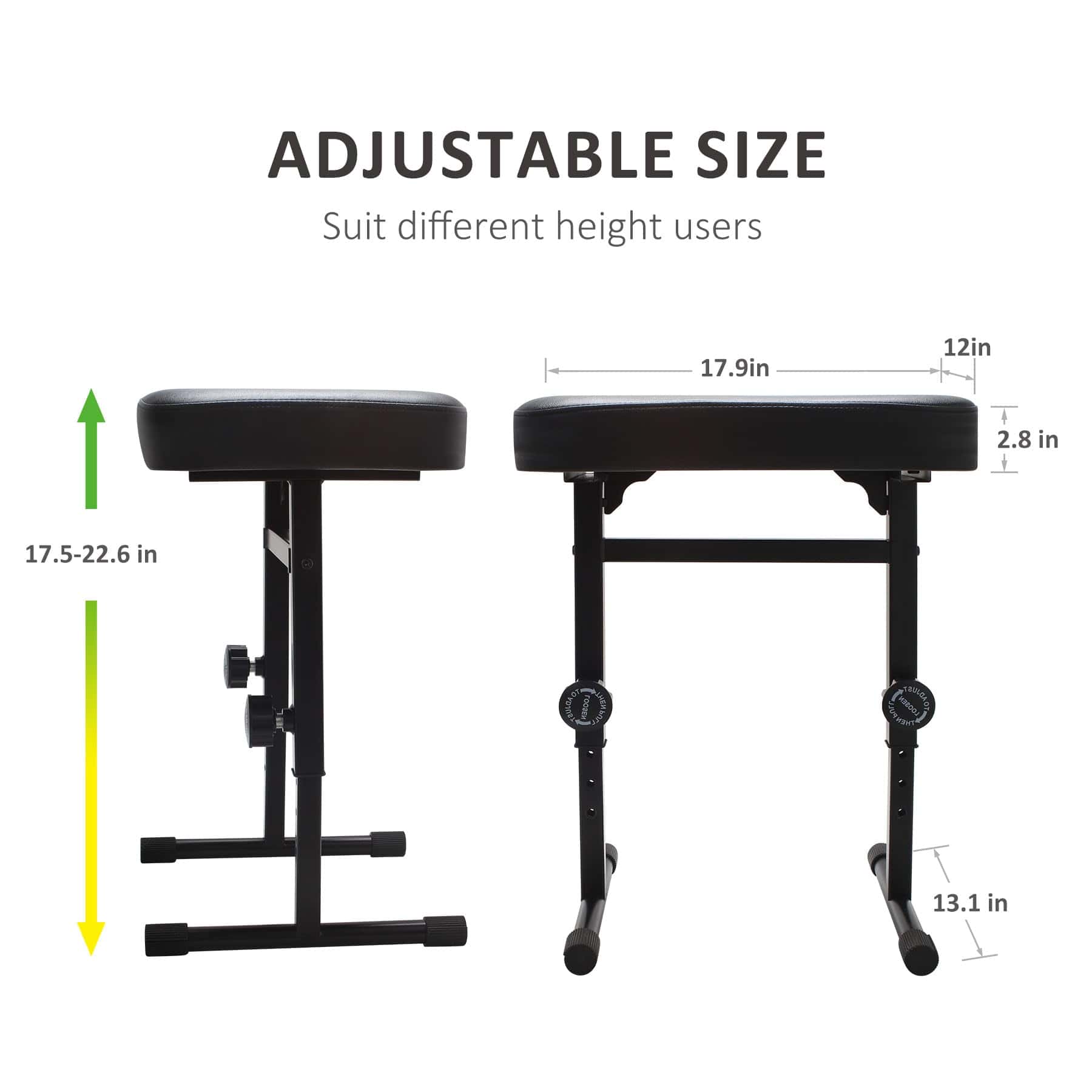 1. Ajuste de altura para todas las edades: Con un rango de altura ajustable de 17.5 pulgadas a 22.6 pulgadas y seis pasos de altura, este banco de piano atiende a jugadores de diferentes edades y estilos de interpretación, garantizando una postura y comodidad óptimas al tocar.
