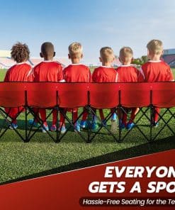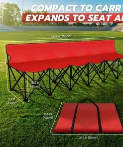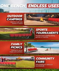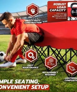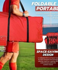 Contenido del paquete: 1 x Banco Plegable Portátil Flexzion, 6 Asientos, Banco de Fútbol Plegable, Bancos Portátiles para Gradas, Camping, Línea Lateral, con Respaldo y Bolsa de Transporte, Rojo