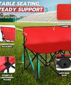 Ya sea en un retiro perfecto rodeado de la naturaleza o asistiendo a un emocionante partido de deportes, el asiento plegable tiene un lugar en cada espacio al aire libre. Añade asientos adicionales y haz que tu experiencia al aire libre sea más cómoda. Estas sillas de banco plegables vienen en varios tamaños y materiales, pero nuestro banco deportivo plegable para seis personas garantizado en calidad debería ser tu mejor elección. Tiene el tamaño perfecto, es increíblemente ligero y muy fácil de transportar; no es una carga para llevarlo a donde quieras ir, ideal para el equipo de fútbol u otros equipos deportivos, campamentos y otras actividades al aire libre. Está construido con un resistente marco de acero y duradera tela de oxford de doble capa 600D para un uso duradero. Su diseño alto de respaldo apoya la espalda para recostarse, elevando el nivel de comodidad. Viene con una bolsa de transporte para un fácil transporte y almacenamiento. No se requieren instrucciones ni montaje. ¡Qué maravilla! Así que, no te pierdas este fabuloso producto y ¡realiza la compra ahora!