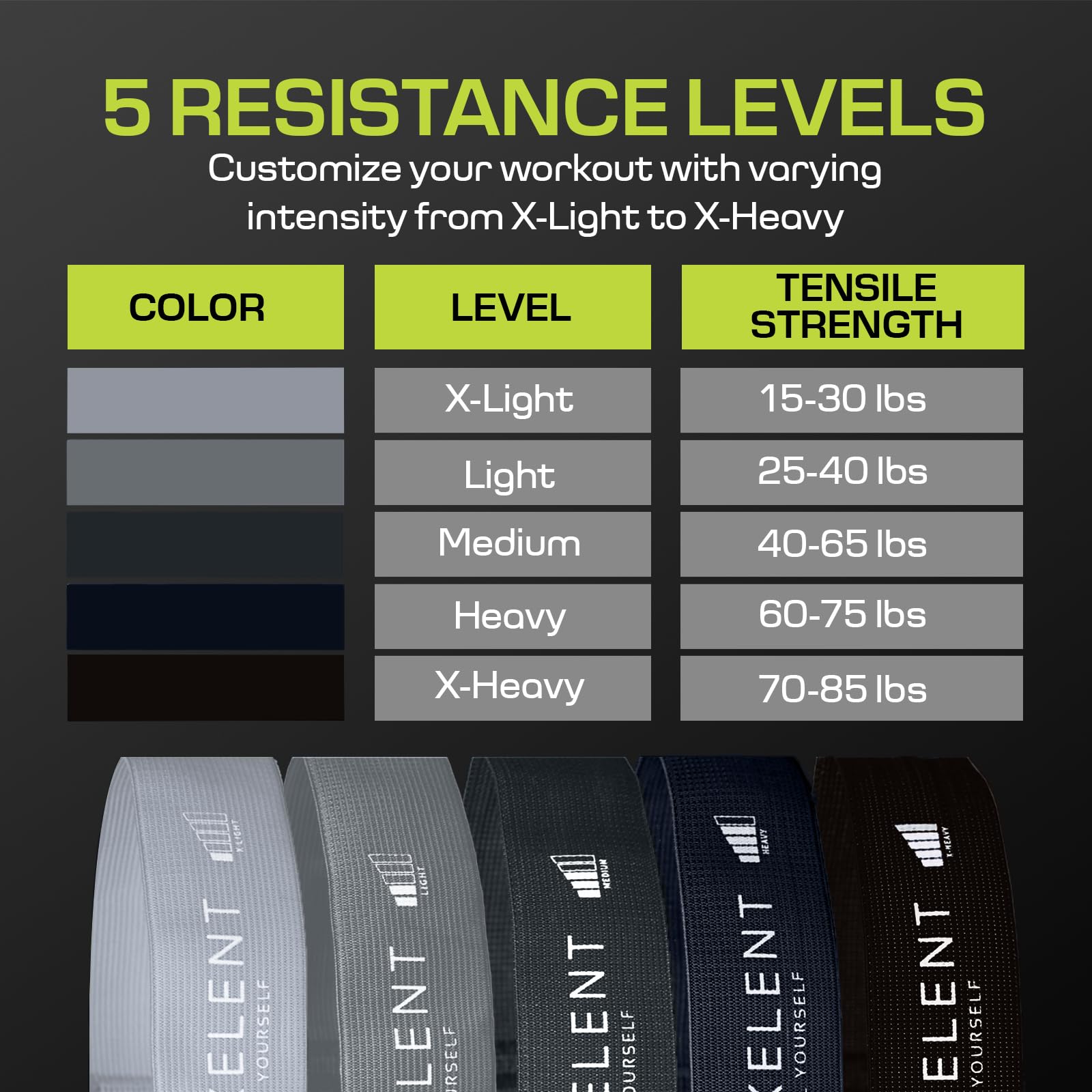 2. 5 NIVELES DE INTENSIDAD PERSONALIZABLE: Con 5 niveles de resistencia, este set de bandas de fitness de tela ofrece cinco (5) intensidades ajustables, lo que las hace perfectas tanto para principiantes como para usuarios avanzados. Te permiten progresar a tu propio ritmo y dirigir eficazmente diferentes grupos musculares para un entrenamiento más personalizado.